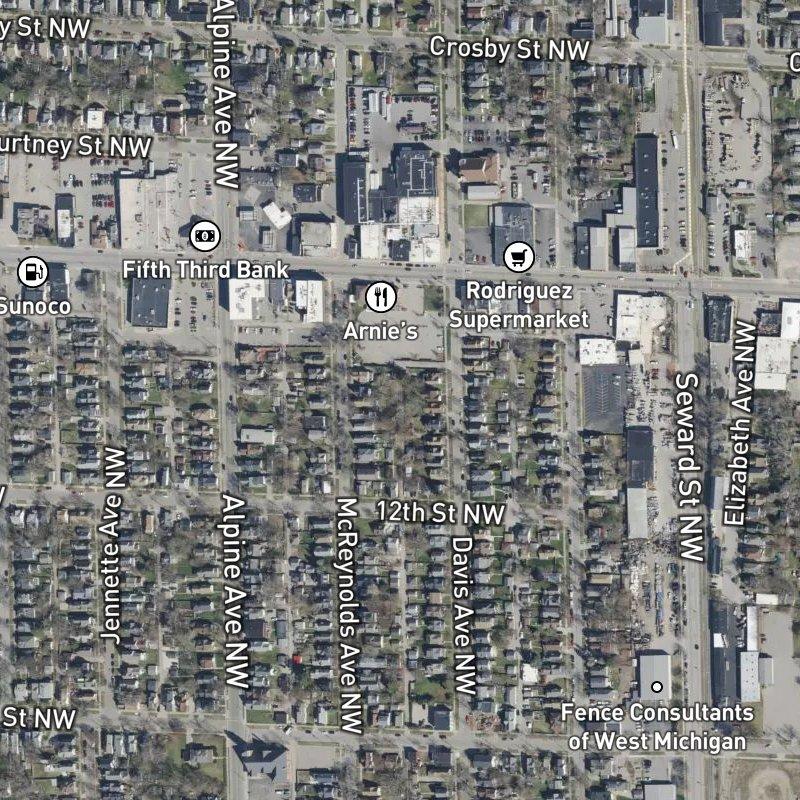 What might surprise you about this subdivision is how much is literally at your doorstep—grocery, restaurants, transit stops—while you're still just six minutes from downtown Grand Rapids. The blocks sit within West Grand, where 11 acres of modest lots (averaging 0.12 acres) create a dense, walkable pocket with 162 restaurants and 30 grocers within a mile. Homes here run around $223K, and you can reach Grand Rapids Public Schools assignments easily. Harrison Park is a nine-minute walk away, offering everything from tennis courts to a swimming pool on its 57 acres.