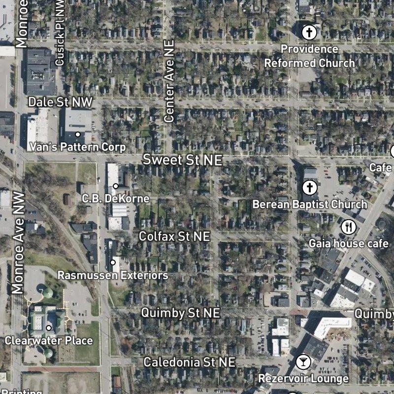 This 11-acre subdivision sits where Creston meets its densest commercial corridor—Plainfield Avenue cuts right through it, which means the nearest restaurant is literally steps away and grocery shopping takes three minutes on foot. The median home value hovers around $236K, with lots averaging 0.14 acres apiece, and you're looking at a five-minute drive to downtown Grand Rapids. Sweet Street Park lands a ten-minute walk away, though eight parks cluster within a mile, and the boat launch at Comstock Riverside is just over half a mile south if the Grand River calls to you. Schools feed into Grand Rapids Public Schools. The neighborhood hums with 84 restaurants in a one-mile radius—that Plainfield Avenue energy is genuinely close—while a transit stop sits two minutes away on foot. It's dense without feeling cramped, walkable to the things that matter most (food, transit, errands), and priced in a way that doesn't require a second mortgage.