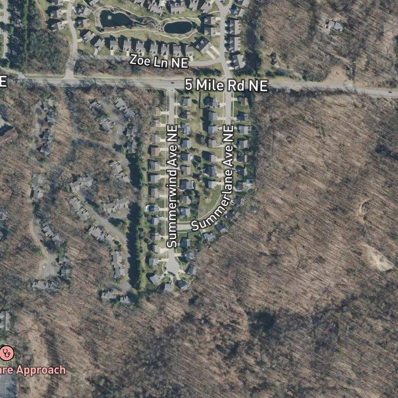 You turn onto the tree-lined streets here expecting another cookie-cutter subdivision, and instead you find 20 acres of homes—mostly in the $415K range—with enough breathing room that you're not looking directly into your neighbor's kitchen. The lots average just under a third of an acre, which means actual yards and mature trees rather than postage stamps. Everything you need is literally around the corner: a coffee shop and restaurant within a short drive, 42 places to eat within a mile, a grocery store just across the way, and D.W. Richardson Park less than a mile off if you want to stretch your legs or let the kids run. Versluis Lake sits about a mile away, and the Rogue River boat launch is even closer if you're into that. Downtown Grand Rapids is 16-plus minutes down the road, and the airport about 25, so you're close enough to the action without living in it. Northview Public Schools serves the area, and the whole setup sits in the Grand River Dr & East Beltline Ave Area, which means you've got real suburban bones with actual access.