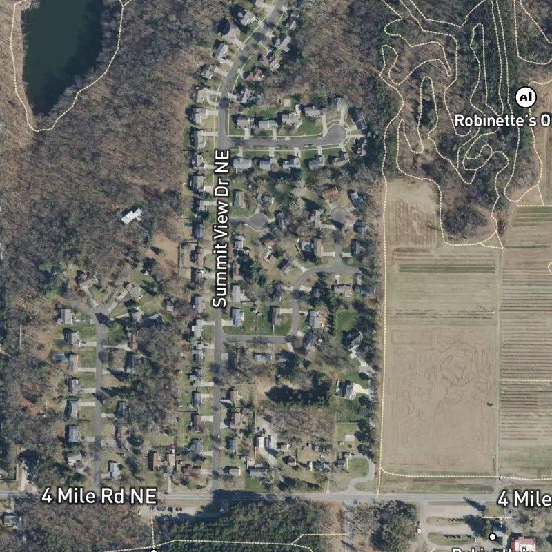 Summit View Plat sits on 14 acres where Plainfield and 4 Mile Road intersect, a quietly purposeful location that means downtown Grand Rapids is 15 minutes away but you're not paying for proximity—homes here run around $371K. The subdivision feeds into Northview Public Schools, and if you need to catch a flight, Gerald R. Ford Airport is about 23 minutes south. There are six restaurants within a mile, a coffee shop equally close, and Northville Park Association Park is a short six-minute walk away; five parks total lie within a mile of the development. Groceries aren't footsteps away—the nearest is 1.5 miles—but 18 stores spread across two miles means you're not marooned. This is the kind of place where you get land and reasonable access without the metropolitan premium, the sort of West Michigan location that makes sense if you've lived everywhere else and decided you actually want to be here.