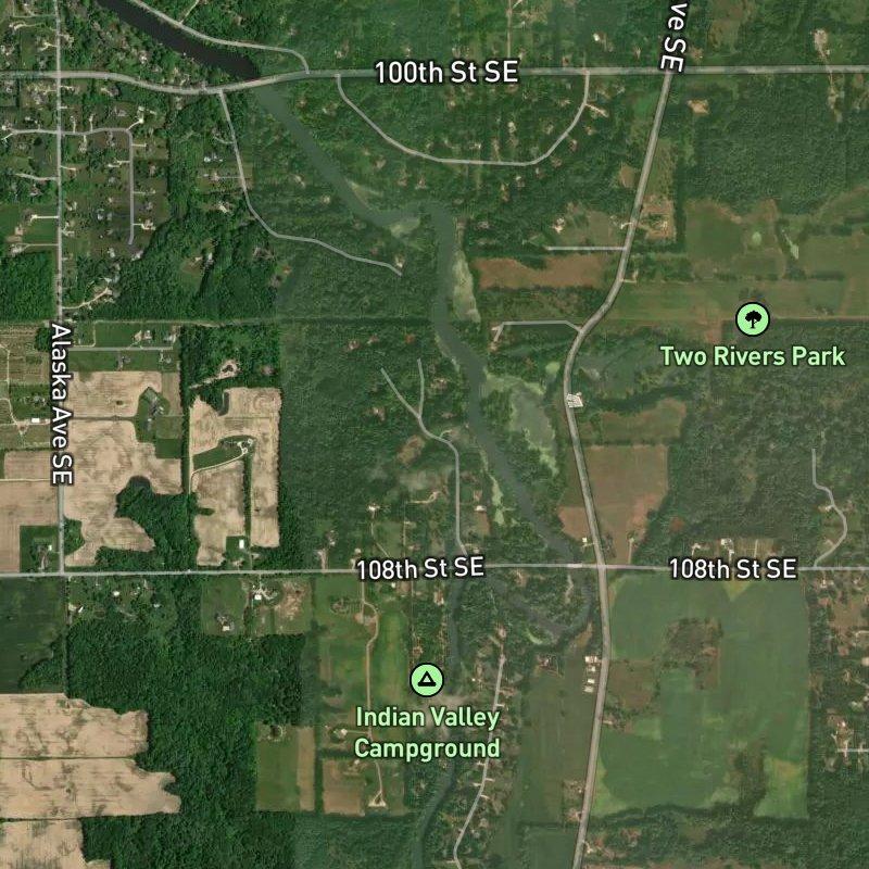 Sun-Da-Go glows at golden hour, when the late-afternoon light hits the condos just right and makes you remember why you chose 56 acres in the first place. It's a straightforward condo community in the 100th St & Whitneyville Ave Area, about 17 minutes from Gerald R. Ford Airport and just over half an hour from downtown Grand Rapids—close enough to the action, far enough to breathe. Two Rivers Park is a five-minute walk away, and there are two more parks within a mile, which means your weekends don't require a car ride just to get outside. The nearest grocery is 2.4 miles out, and restaurants and coffee shops sit around the two-mile mark, so you're trading walkability for actual space and the kind of quiet that comes with living on actual land. Homes here run in the low $300s to mid-$400s. Caledonia Community Schools serves the area, and the bones of the place—condo living with real acreage—appeal to people who've gotten tired of feeling their neighbor's footsteps from above.