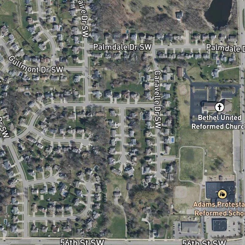 The moment you turn onto the street, you feel the subdivision settle around you—eight acres of modest, orderly lots with homes running around $489K, each perched on roughly two-fifths of an acre. It's the kind of place where the houses don't tower over the street, and you can actually see your neighbors' front porches without binoculars. Within the Koster Estates Area, it sits comfortably close to things: downtown Grand Rapids is fifteen minutes away, the airport twenty, and you're never more than a few blocks from one of the 132 restaurants scattered within a mile, or a grocery store, or a coffee shop.