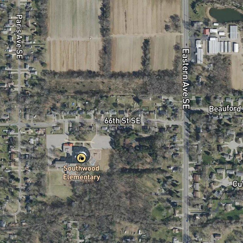 This seven-acre subdivision sits about sixteen minutes from downtown Grand Rapids and just under fifteen minutes from Gerald R. Ford Airport, making it accessible without feeling hemmed in by either. Lots average a fifth of an acre—compact enough to keep maintenance manageable, spacious enough for a real yard—and homes here run around $265K. You're close enough to Creekside County Park for a quick walk (eight minutes), and there are thirty-six restaurants and thirty groceries within a mile, so errands don't require much planning. The nearest coffee shop is a full mile away, which means you'll either make coffee at home or commit to the drive, and the same goes for that grocery run—fourteen minutes on foot puts it just outside casual-walk territory. Kentwood Public Schools serves the area, and a transit stop sits eleven minutes away if you need it. It's straightforward subdivision living: solid bones, reasonable prices, enough amenities nearby that you won't feel stranded.