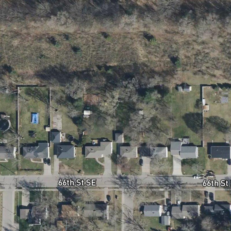 The moment you turn onto the street, you notice the lots are tight and efficient—quarter-acre parcels that pack a lot of living into a small footprint, about 3 acres total. You're roughly 16 minutes from downtown Grand Rapids and 14.5 minutes from Gerald R. Ford International, so commuting doesn't eat your whole day. Creekside County Park sits about a 9-minute walk away, and there are two parks within a mile if you want to stretch without getting in the car. Grocery stores and restaurants cluster nearby—six dining spots and 36 grocers within a couple of miles—so running errands is straightforward. Public transit is a quick 11-minute walk, which matters if you're not driving everywhere. Kentwood Public Schools serves the area. Homes here are affordable, median values hovering around $3K, making this a practical choice if you're looking to own without overextending. It's the kind of place where location and accessibility trump sprawl.