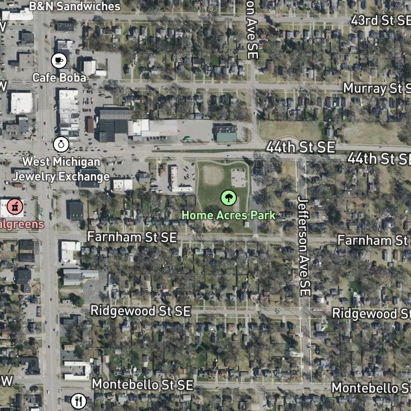 The sidewalk drops you right into the thick of things—a six-acre plat where homes sit close enough to the street that you can wave at neighbors heading to the corner coffee shop, which is a three-minute walk away. Home Acres Park runs along the edge, and there are six other parks within a mile if you want options. Downtown Grand Rapids is about ten minutes by car, and you're roughly fifteen minutes from the airport. Homes here run around two hundred forty thousand dollars, and the lot sizes average just under a quarter acre—tight enough that you're never isolated, but roomy enough to have your own space.