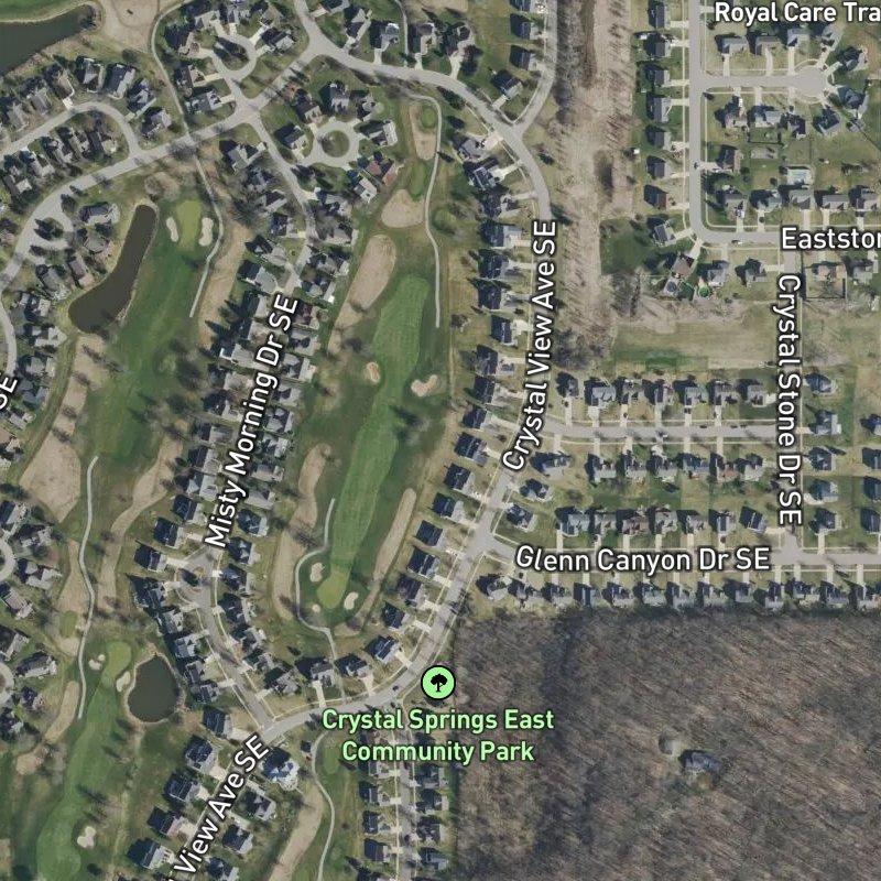 What might surprise you about The Fairways No.2 is how much is within reach without leaving the subdivision—parks, restaurants, and shops cluster close enough that most errands don't require a car, yet the place feels residential rather than congested. Eleven acres of plat holds homes running around five hundred twenty thousand dollars, with Crystal Springs East Community Park just a two-minute walk away and sixty restaurants within a mile. Downtown Grand Rapids sits eighteen minutes south; Gerald R. Ford Airport is fourteen minutes in the other direction.