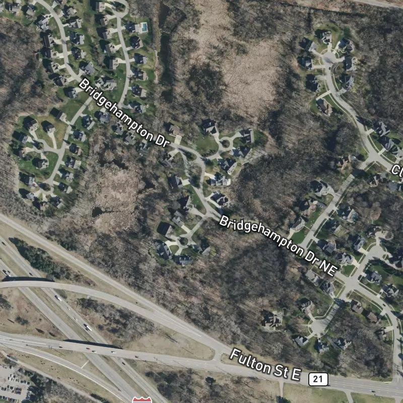 The Hamptons sits on twenty-four acres where each condo lot averages just over half an acre—rare breathing room for a development this dense. Hidden Lake is half a mile away, and Cascade Community Association Park lies about a mile down the road. You're ten minutes from downtown Grand Rapids and roughly sixteen minutes to Gerald R. Ford Airport, which means you've got access without the constant sound of jet fuel and ambition. A grocery store, coffee shop, and restaurant are all within a mile and a half, and there are six grocers within two miles if you're the type who shops around. The median home here runs around nine hundred ninety-four thousand dollars.