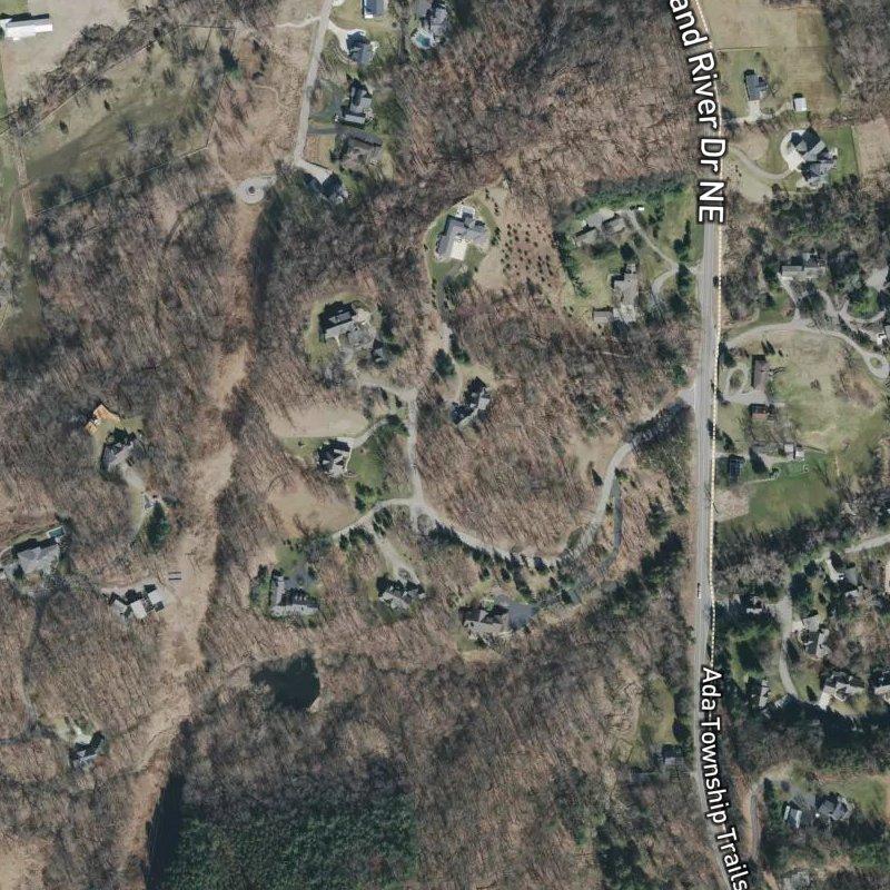 ...so you've got these sprawling homesites on 31 acres, and what makes The Highlands work is that you're not cramped—the average lot runs 3.15 acres, which means you actually have room to breathe out here. Homes hover around $2.3M, and the location is solid: you're about 14 minutes from downtown Grand Rapids, 18 minutes to Gerald R. Ford airport, so it doesn't feel remote even though the plots are genuinely spacious. There's a grocery within a couple of miles—actually six of them within two—and a restaurant about 1.6 miles down the road if you don't feel like cooking. Carl Creek Wetlands Preserve is just over a mile away if you want to stretch your legs, and if you're into the water, Knapp Street Bridge Launch sits about 2.3 miles out for boat access. The real draw here is the land itself: you get that open-air feel without being stranded, and the condo structure means someone else is handling the maintenance headaches while you're out actually using your property.