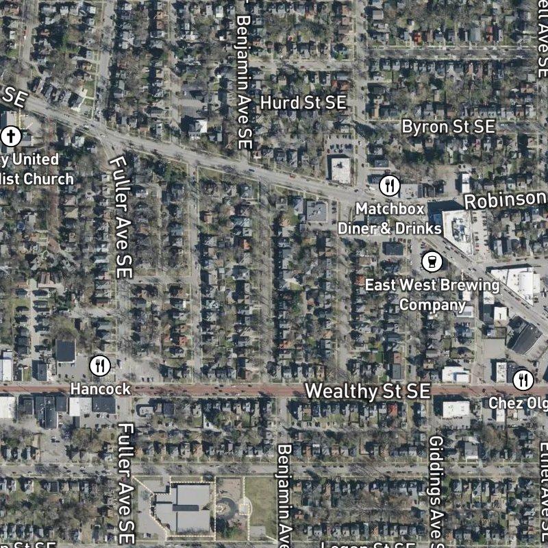 What surprises people about Thomas Benjamin Add is how much of Eastown fits into seven acres—a tight grid of small lots where you're steps from restaurants, coffee shops, and a transit stop, yet surrounded by fifteen parks within a mile. The subdivision's 0.14-acre lots anchor a neighborhood that's been quietly building itself since the 1970s, when Yesterdog opened to a stretch of empty storefronts and the whole district turned itself around through sheer momentum. You can walk to grocery stores in six minutes, to a dog park in fifteen. Downtown Grand Rapids sits five minutes away by car. Homes here run around $594K, and they're served by William C. Abney Academy. What makes this work isn't gentrification polish—it's the genuine density of things to do, eat, and access, all woven into a walkable block where the ordinary rhythms of errands, dining, and getting around happen without thinking.