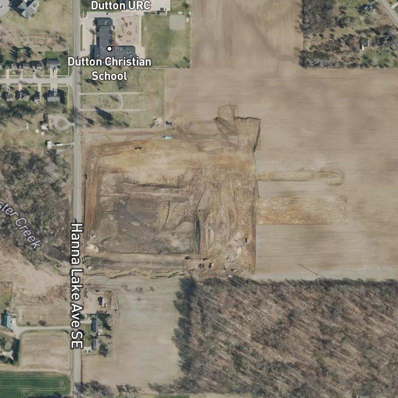 Thornapple Farms sits on 35 acres just east of Grand Rapids, where cornfields and wetlands still frame the horizon—you're close enough to downtown (20 minutes) and the airport (10 minutes) to avoid the commute, but far enough out that the subdivision feels genuinely removed. Traditional stone and siding homes run around $462K, laid out across what was once rural land near Hanna Lake Avenue and 76th Street. A restaurant is a four-minute walk away, and there are a dozen more within a mile, plus two parks nearby and Dutton Shadyside Park an eight-minute walk off. Groceries take a short drive—the nearest is 1.8 miles—but you've got twelve stores within two miles if you need options. Kids go through Caledonia Community Schools. It's the kind of place where you get suburban breathing room without sacrificing access.