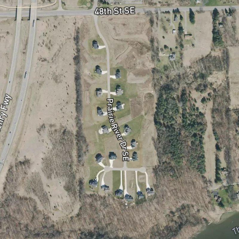 You're looking at 35 acres of condo living out in the 48th St & M-6 Fwy area, where you get real space without the full acre-lot maintenance headache. Homes here sit on just over an acre each, which means actual breathing room between you and your neighbors—not the stacked-box feeling you get in tighter developments. The landscape is genuinely open, and you're close enough to Gerald R. Ford airport that a run there takes just under 10 minutes, which matters if you travel regularly. Downtown Grand Rapids is about a 20-minute drive when you want to head into the city. Cascade Township Park is a mile and a half away if you need green space beyond your own lot. You'll find groceries about 2.6 miles out, a restaurant roughly 2.1 miles down the road, and a coffee shop a shade closer to 3 miles—nothing's walking distance, but nothing's far either. Your kids would be in Forest Hills Public Schools, and homes here run around $149K, which buys you that land-forward lifestyle without the custom-build price tag.