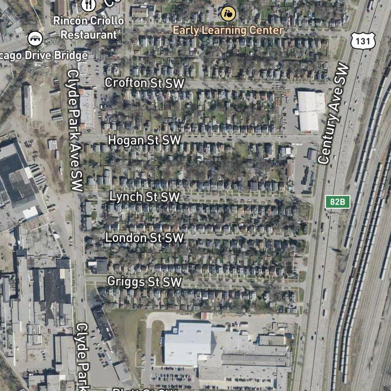 Timothy Lynch's Addition is a nine-acre platted subdivision where the lots are modest—just over a tenth of an acre each—and the whole operation sits seven minutes on foot from Roosevelt Park's soccer fields and skate park. You're a ten-minute drive from downtown Grand Rapids, which means the noise and light pollution stay at arm's length while the amenities don't. Homes here run around $186K, and there are sixty restaurants within a mile if you're tired of cooking, though a coffee shop requires a drive or a longer walk.