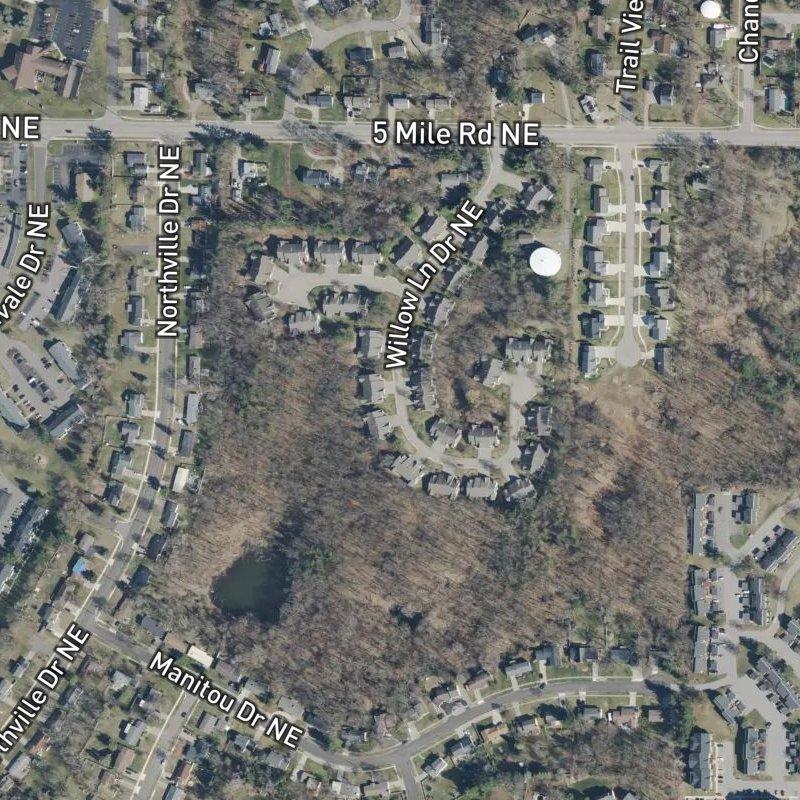 If I had one thing to tell you on the drive over, it's that Treemont feels like real space—25 acres where you're not crammed in, and homes here run around $582K. The condo community sits in the Plainfield Ave & 4 Mile Rd Area, about 15 minutes from downtown Grand Rapids, so you get breathing room without feeling stranded. You're a short drive from Gerald R. Ford airport too, which matters if you're actually using it. The layout gives you room to move around your own lot without feeling your neighbor's driveway in your face—that's the real draw here.