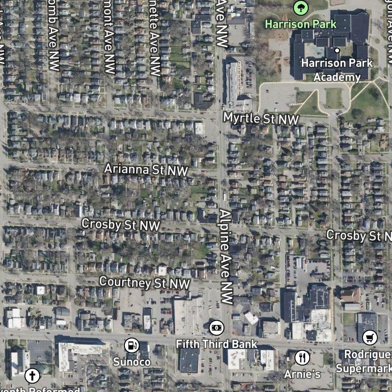 You're a few minutes from downtown Grand Rapids—close enough that the commute doesn't eat your morning, far enough that you're not paying downtown prices—and Tregents Sub. sits right in that sweet spot, a small 6-acre platted subdivision where lots run lean at about 0.13 acres each and homes hover around $242K. Harrison Park is a five-minute walk away, which means your Saturday mornings have somewhere real to go, and the neighborhood's restaurants and grocers cluster so tightly that you can grab coffee or dinner on foot before the caffeine wears off or hunger sets in. Grand Rapids Public Schools serves the area, and you're in West Grand, a neighborhood with genuine roots—the kind of place where brick churches and converted factories tell you something actually happened here, not just where people moved to escape something else. Transit is practically on your doorstep, the Grand River's boat launch sits just over a mile away, and you're close enough to Gerald R. Ford Airport that weekend trips don't require planning your whole day around the drive.