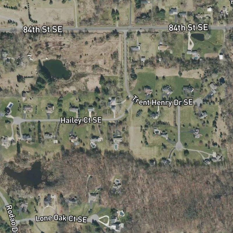 The condo lots here average two acres—unusual spaciousness for attached housing. Trent Henry Meadows sits on 49 acres in the 100th Street and Whitneyville Avenue area, where homes run around $672K and the community feels more like a low-density enclave than a typical condo development. You're about 12 minutes from Gerald R. Ford Airport and a half-hour drive to downtown Grand Rapids, which means reasonable access without the constant hum of being right in the middle of things. LaBarge Dam Recreation Area is within a 15-minute walk, and Blodgett Lake sits about a mile away if you're drawn to water access. The nearest grocery lands at 2.1 miles, with a restaurant just 1.7 miles down the road and a coffee shop at 2.4 miles—close enough that errands don't require serious planning.