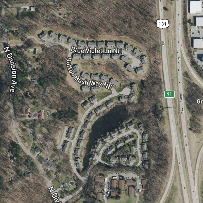 What strikes most people about Trillium Glen is how much space thirty-nine acres actually feels like—wide lots, breathing room between homes, the kind of setting where you're not counting your neighbor's windows. Yet despite that sense of removed calm, you're closer to downtown Grand Rapids than you'd expect: about eleven minutes by car. The community sits within the larger Grand Oaks No. 2 Area, where restaurants and coffee shops cluster within a six-minute walk, and grocery options multiply once you venture a mile or so out. There are thirty restaurants and thirty-six grocery stores within a two-mile radius, which means the suburban spaciousness here doesn't require you to drive far for daily life.
