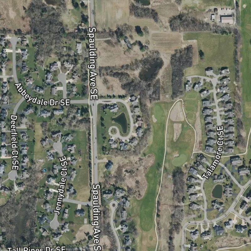 ...so you've got seven acres of condos laid out at a reasonable density—about a third of an acre per unit—which means you're not stacked on top of anyone, but you're also not pretending you've bought a small farm. The median home value hovers around $830K, which puts this squarely in the territory where people have stopped looking at comps obsessively and started thinking about where they actually want to spend their time. Forest Hills Public Schools runs the schools, and the location sits just far enough from downtown Grand Rapids—about 15 minutes—that you catch the commute window without living in it, while Gerald R. Ford Airport is 11.6 miles away if you're the type who leaves at the exact moment your flight boards. The practical stuff lands easy: Northeast Park sits less than a mile off, groceries are everywhere (thirty stores within two miles), and the nearest restaurant, coffee shop, and market are all within a casual drive that doesn't feel like an errand. The real detail, though, the one that actually matters once you've moved in: you're on 7 acres of your own, not threaded into someone else's downtown vision, which means your neighbors aren't deciding what your Saturday sounds like.