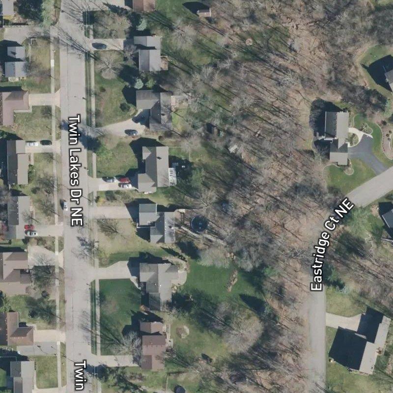 Twin Lakes Estates sits just north of I-196 in the Leffingwell-Twin Lakes area, where the Beltline corridor meets residential streets lined with modest single-family homes on half-acre lots. You're about nine and a half minutes from downtown Grand Rapids and surrounded by the practical mix that defines this part of town—shopping centers, chain dining, and easy highway access, with Celebration Cinema North a short drive away. Church Lake sits less than a mile south, and Cascade Community Association Park is about a mile and a quarter down the road. The subdivision itself is compact at three acres, with homes running around $452,000 and zoned for Forest Hills Public Schools.