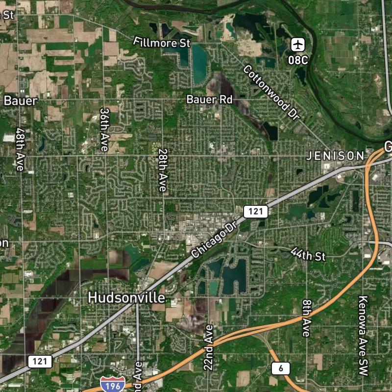 Late afternoon light hits these ranch homes just right, when the whole neighborhood settles into that golden-hour calm. Twin Pine Estates sits in Georgetown charter township, about 20 minutes from downtown Grand Rapids, with grocery stores and restaurants literally steps away—no planning required for dinner. Homes here run around $360K, and you've got 54 restaurants within a mile and two parks close by, including Rosewood Park just an 11-minute walk. Jenison Public Schools serves the area, and if you need a coffee run, there's one about a mile down the road. The neighborhood has that suburban ease where you're not squeezed in but you're not isolated either—1,032 acres of ranch-style brick and aluminum homes that feel lived-in and real.