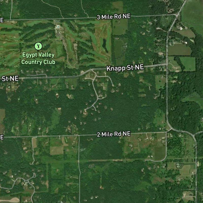 Spread across 117 acres in the Honey Creek Ave & 2 Mile Rd Area, Valley Ridge Country Club Estates sits in West Michigan's quieter northeast quadrant, where you can see open land in most directions and downtown Grand Rapids is a straightforward 20-minute drive when you need it. The condo community is built on substantial lots—averaging 2.23 acres each—which means the usual subdivision feel of close quarters doesn't apply here; there's real space between homes. Forest Hills Public Schools serves the area, and if you want to spend a Saturday on the water, Knapp Street Bridge Launch is less than three miles away. Grocery shopping and dining require a short drive (3.1 miles to grocers, 2.9 to restaurants), a trade-off typical of the region's more spacious neighborhoods. Median home values hover around $962K, and what you're really buying into is land—the kind of property where your neighbors aren't silhouettes through a window.