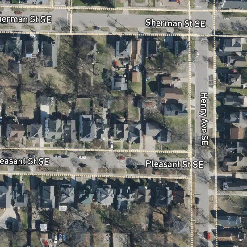 Early evening light hits the brick and modest single-family homes here best—when the street settles and you can actually see what the subdivision is: a one-acre collection of small lots in Southeast Grand Rapids, minutes from downtown. The neighborhood sits within the Seeds of Promise community area, where the real action is a six-minute walk to restaurants or a ten-minute walk to groceries. Transit stops are three minutes on foot. Homes run around $192K, and lot sizes average just over a tenth of an acre.