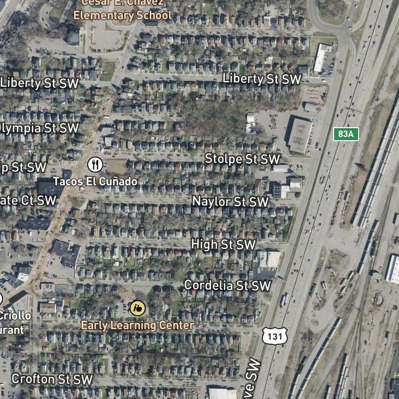 The moment you turn onto these streets, you feel the density—narrow lots packed with modest bungalows and Cape Cods, each one sitting close enough to its neighbor that you could almost hear the conversation through the wall. Vander Stolpe's Third Add. sits deep in Roosevelt Park, an 18-acre subdivision where homes run around $161K and the rhythm is pure residential, no pretense. Downtown Grand Rapids is five minutes away by car, but the real draw is how close everything already is: a restaurant is literally steps from your door, transit stops are steps away too, and Roosevelt Park itself—with its soccer fields and skate park—is a six-minute walk.