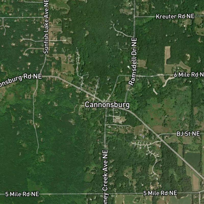 Sitting where Cannonsburg Road meets Myers Lake Avenue, this 138-acre platted subdivision spreads across generous lots—averaging 1.32 acres each—with enough breathing room that you're not counting your neighbor's fence posts. Downtown Grand Rapids is about 24 minutes south, and the airport another six beyond that, which means you're far enough out to feel like you've left the city without actually being stranded. Homes here run around $286K.