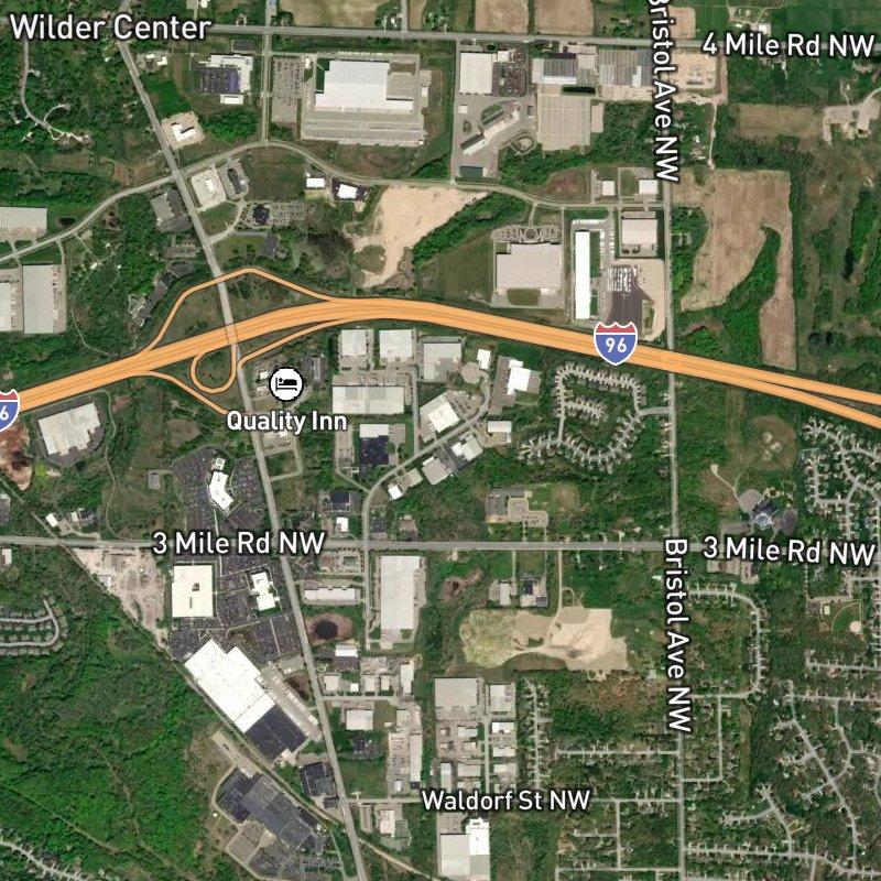 Driving through Walkent Industrial Park, you move through 74 acres of platted subdivision land where the rhythm feels built for commerce—clean sightlines, roads laid out with purpose, a layout that doesn't waste your time getting where you need to go. Downtown Grand Rapids is 11 minutes away, and the Gerald R. Ford airport sits about half an hour out, which means the location punches above its weight for logistics. A coffee shop is a two-minute walk, and restaurants cluster nearby—a dozen within a mile—so the immediate surroundings aren't devoid of life. The nearest transit stop is practically at your doorstep, and four parks sit within a mile if you need green space. Walker Charter Academy serves the area, and though the industrial character dominates the streetscape, the zone's proximity to both urban access and quiet space gives it a particular kind of utility that suburbs often promise but rarely deliver.
