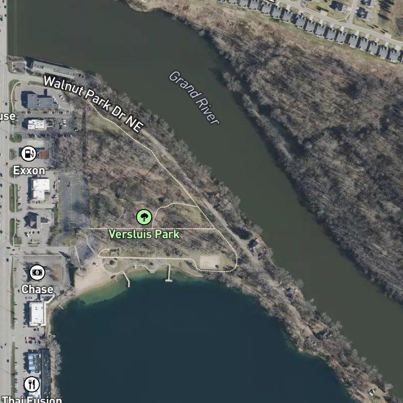 Walnut Park's defining feature is its sheer density of restaurants—66 of them within a mile, which means you can walk out your door and find dinner without a plan. The subdivision itself spreads across 8 acres in the Grand River Dr & East Beltline Ave Area, with lots averaging 0.27 acres, making this a place where homes cluster close and street life happens naturally. Versluis Park sits right next door, and the lake of the same name is less than half a mile away if you want water access without a drive; the Rogue River boat launch is equally close. Grocery stores and coffee shops are a short walk—six minutes to the nearest café, seven to shops—and downtown Grand Rapids is eighteen minutes by car when you need something the neighborhood doesn't have. Homes here run around $198K, which buys you proximity to eating and living rather than square footage or isolation. Northview Public Schools serves the area, and the whole setup works if you're someone who chose proximity over sprawl.