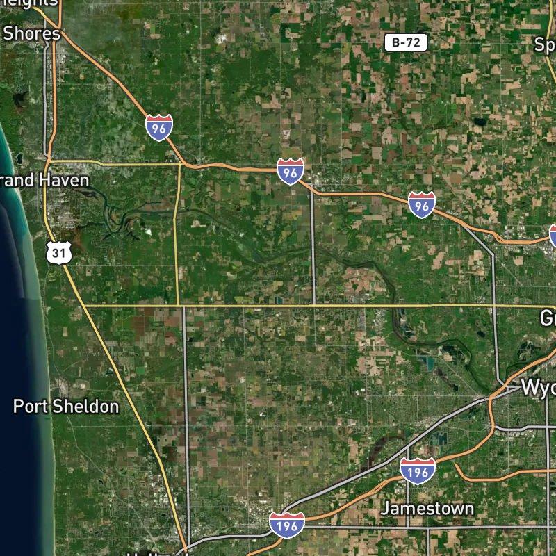 Driving through Warner Street Area, you move through open ranch-lined streets where 6,357 acres give the neighborhood room to breathe—this is Allendale charter township land, the kind of place where the Grand River forms a boundary to the north and Lake Placid sits nearby for those who want water access. Homes here, mostly ranch-style construction, run around $485K, and the grocery store is a 12-minute walk away, with about a dozen restaurants and shops clustered within a mile—close enough that you're not entirely car-dependent, far enough that you get actual space. Bass River Recreation Area lies 1.5 miles down the road if you're looking for trails or a launch point. Downtown Grand Rapids is roughly 30 minutes by car, and the Lake Michigan beaches at Grand Haven clock in at 23 minutes, making it easy to slip out for either a city errand or a beach day without leaving the township entirely. Allendale Public Schools serve the area, and the presence of Grand Valley State University's sprawling campus a few miles over means the township has substance—nearly 27,000 residents, over 200 businesses—without feeling crowded.