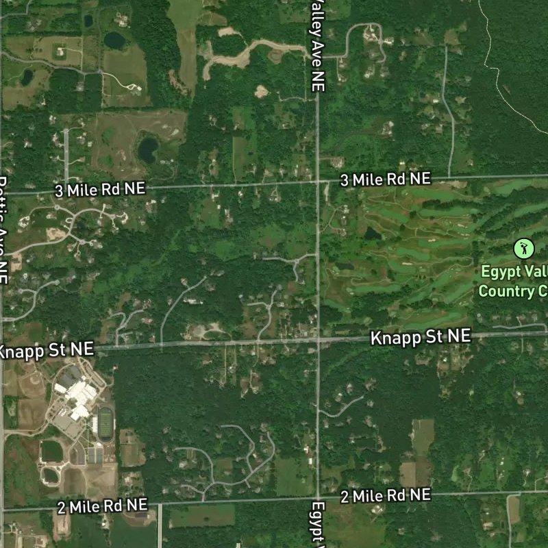 You might expect a condo community to mean density—stacked units, shared walls, the hum of neighbors through thin plaster. Wedgefield is something different: 50 acres spread across homes that sit on an average of 1.5 acres each, which means space feels genuinely available here, not rationed. Homes run around $1.0M, and they're scattered across enough land that you can breathe without seeing into someone else's kitchen. The Forest Hills Public Schools serve the area, and downtown Grand Rapids is about 18 minutes away when you need it—close enough that you're not choosing isolation, far enough that the everyday pace stays unhurried. Gerald R. Ford Airport sits about 24 minutes out, which matters if you travel.