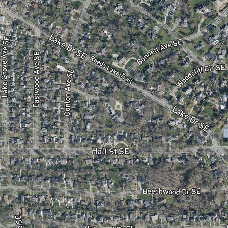 The lots here run nearly an acre each across five acres of the the-meyering-land-co-lake-drive-estates-sub-area, with homes settling around $1.3M and space that feels genuinely unhurried for a location just 12 minutes from downtown Grand Rapids. Reeds Lake sits less than a mile away, and the neighborhood has four parks within a short drive, including John H. Bonnell Park at a reasonable walk. The immediate surroundings hold 96 restaurants and 18 grocery stores within two miles—enough density to avoid feeling isolated, but the spacing of the lots themselves keeps things from feeling crowded. Morning coffee and grocery runs land around 0.8 miles out, and a transit stop is within a seven-minute walk for those who use it. East Grand Rapids Public Schools serves the area, and Gerald R. Ford Airport is 17 minutes away when travel calls.