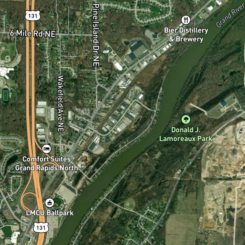 Spanning 74 acres just outside downtown Grand Rapids, West River Business Center sits in a commercial pocket where a restaurant is practically your neighbor—literally steps away—and a coffee shop is a two-minute walk. The location cuts your commute to downtown to under 12 minutes, which means you're close enough to matter but far enough to breathe. Comstock Park Public Schools serves the area. Donald J. Lamoreaux Park is an 8-minute walk if you need green space, and you're surrounded by options: 30 restaurants and 36 grocery stores within a couple miles make daily life uncomplicated. Homes here run in the mid-range, reflecting a straightforward business-first character that doesn't apologize for itself—you're buying proximity and practicality, not pretense. The subdivision sits within the Riverview Homesites Area, a larger region that understands what it is: a working piece of the metro that gets the job done.
