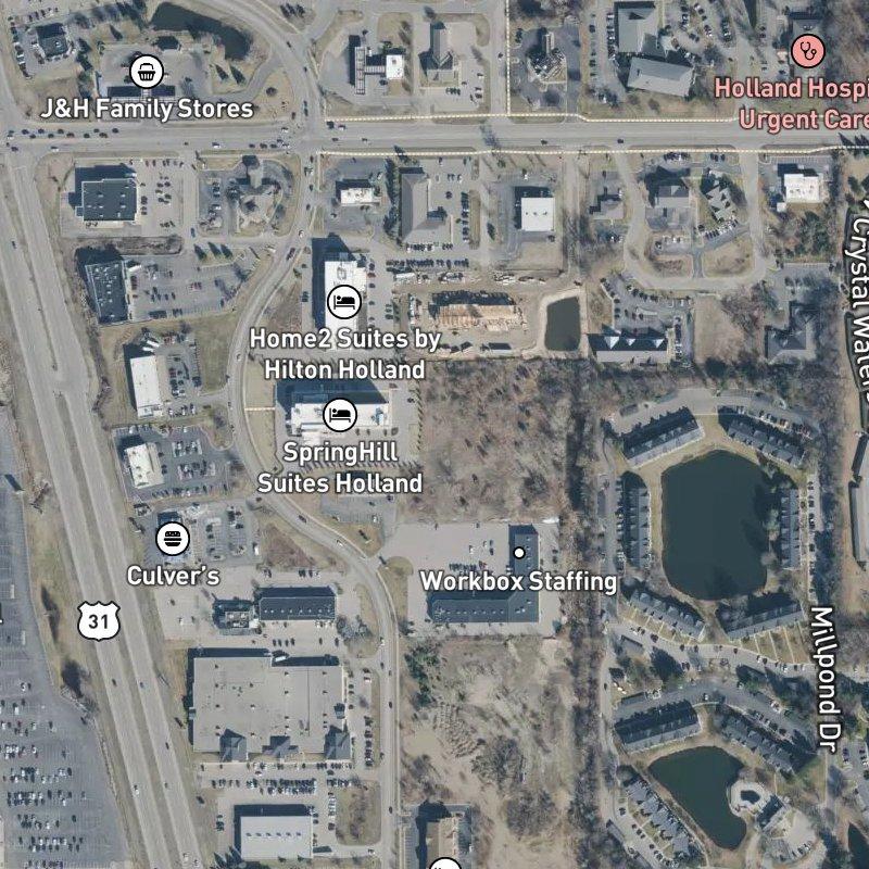 Sitting on 8 acres in Holland charter township, West Shore Hospitality Condo has the kind of access that makes life actually convenient—grocery and restaurants steps away, a transit stop just as close, and 240 dining options within a mile. You're far enough from the noise to breathe, close enough to downtown Grand Rapids that a 38-minute drive doesn't feel like a burden, and Grand Haven beach is just over half an hour if the mood strikes. The neighborhood scores high on walkability for errands and fitness, with a coffee shop a four-minute walk away and 54 grocery stores within two miles.