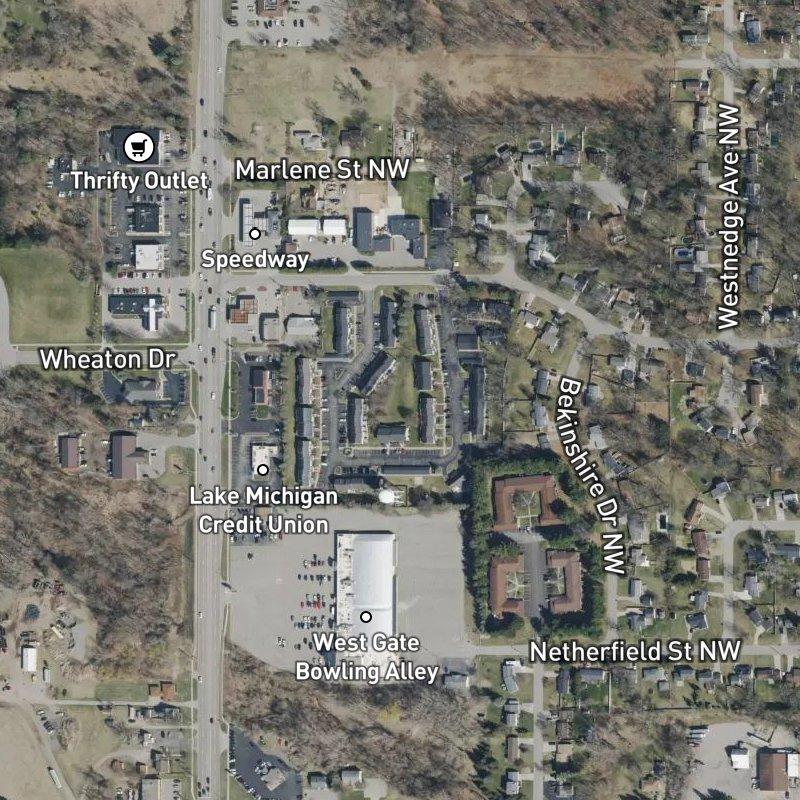 Most people expect condos to mean cramped quarters and shared walls—at Westgate Coach Homes, you're working with something different. The community sits on 8 acres in the Westgate Meadows Area, where each unit feels more spacious than the typical attached home. A grocery store is just a 3-minute walk away, and you're surrounded by 84 restaurants within a mile, so dinner options range from quick weeknight runs to proper outings without ever getting in the car. Downtown Grand Rapids is about 12 minutes down the road, and Gerald R. Ford International is roughly 27 minutes away—close enough for real convenience without the noise that comes with proximity. Homes here run around $191K, and you're enrolled in Comstock Park Public Schools.