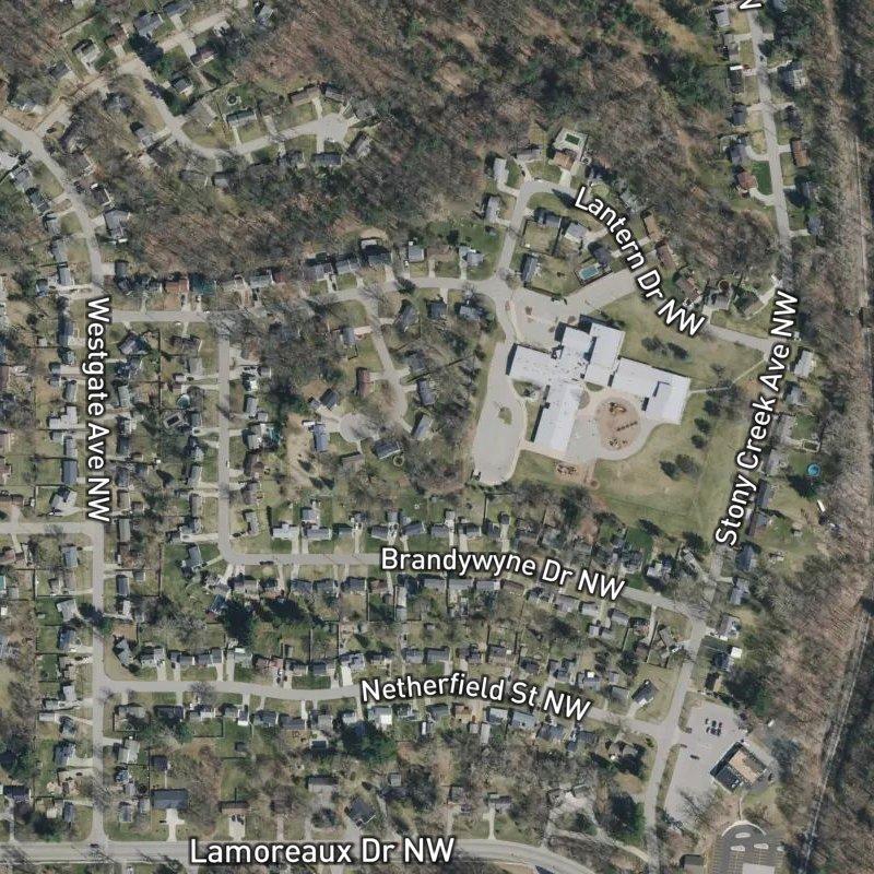 Westgate Meadows sits seventeen acres between downtown Grand Rapids and the airport corridor—close enough to the city that you're downtown in under fifteen minutes, far enough out that you're not hearing constant traffic. Three parks within a mile give the subdivision room to breathe, and Westgate Neighborhood Park is a short walk away. The nearest grocery and restaurants are walkable, though you'll find ninety dining options and thirty grocers within a mile radius if you want variety.