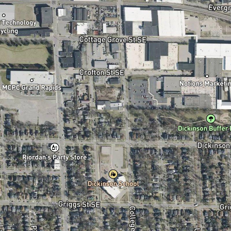 Weston & Meigs Replatted 2nd Add. sits squarely in the Southeast community, seventeen acres carved into modest quarter-acre lots where homes run around $201K. The plat is transit-rich—a bus stop is steps away, and downtown Grand Rapids sits just under eight minutes by car. Dickinson Buffer Park is a four-minute walk, and you're surrounded by restaurants and grocers within a mile, which means lunch won't require much planning. The subdivision falls within Grand Rapids Public Schools, and while the area doesn't scream walkability on paper, the proximity to actual businesses and the transit access keep things practical for a small-lot neighborhood in the city.