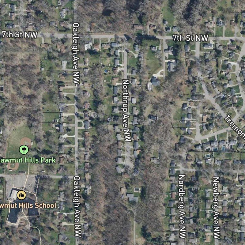 Wienand Plat spreads across ten acres of tree-lined streets where the mature oaks actually make fall look like someone spent a budget on it. You're in Shawmut Hills, the northwest residential corner of Grand Rapids, and downtown is roughly a nine-minute drive if you need to be there—though the small business district on Lake Michigan Drive (grocery, hardware, a few shops) usually handles what you'd want nearby. Shawmut Hills Park sits a four-minute walk away, and there are six parks within a mile total, which matters when you're raising kids or just tired of your own yard. The subdivision's older homes—Ranches, Cape Cods, Colonials from the 1950s and '60s—run between $200,000 and $400,000, most sitting on the kind of lot that actually lets you breathe. Students attend Grand Rapids Public Schools, and a coffee shop, groceries, and restaurants are all under a ten-minute walk, which means you're not landlocked despite the suburban feel.