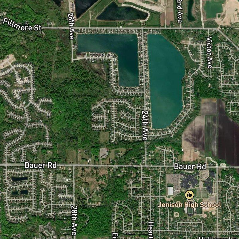 Morning walks here feel unhurried—lots of mature trees, yards that breathe, and neighbors who move at the pace of a 73-acre subdivision rather than a strip of identical parcels. Homes run around $694K on average, and the lots sit comfortably at roughly a third of an acre each, which means you're not stacked on top of anyone. Jenison Public Schools serves the area, and downtown Grand Rapids is about 20 minutes away when you need it.