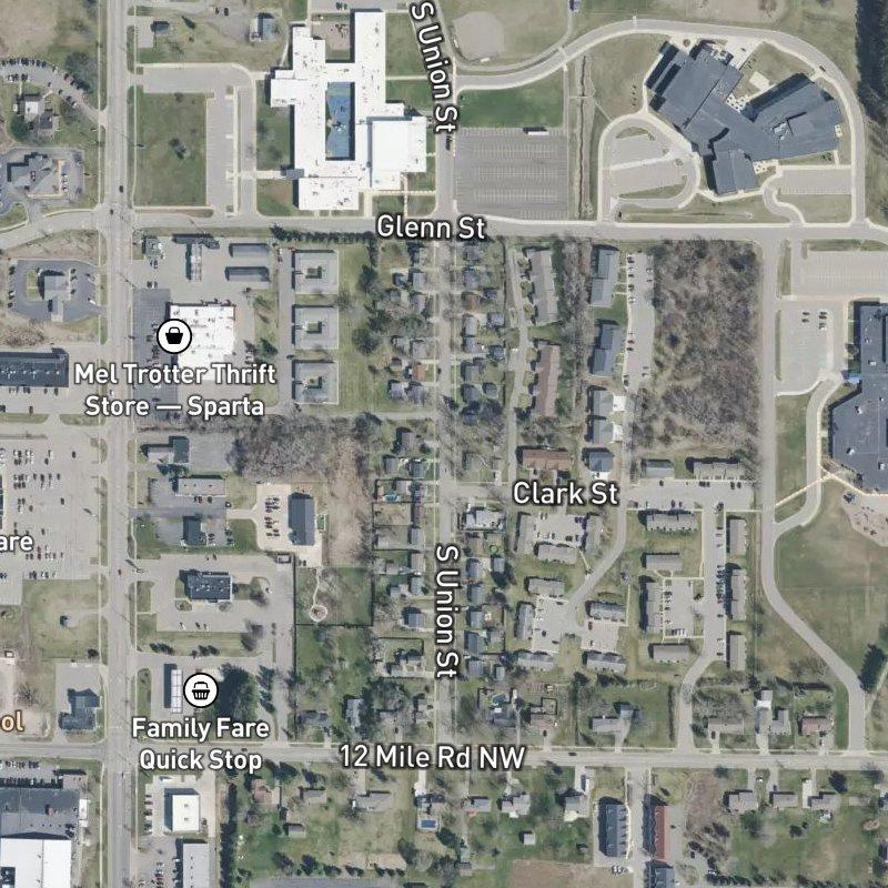 Driving through Willow Park Add. feels like landing in a pocket-sized neighborhood where eight acres somehow fit six parks, a grocery store a four-minute walk away, and a dozen restaurants scattered within a mile. The subdivision's modest lots—each around a fifth of an acre—mean homes sit close enough that the place has actual proximity to things; you're not staring at a horizon of empty space between you and dinner. Median home values hover around $262K, which lands this squarely in the attainable zone for the region. Spartan Park is an eleven-minute walk if you want grass and air, and downtown Grand Rapids is a straight shot of about 23 minutes by car. The school district is Sparta Area Schools, and you're nested in Hinman's Add. Area, which means there's already established infrastructure and character around you. It's the kind of place where you can actually live without a second car—groceries and meals are near enough to get to on foot, but you're not paying the premium for that walkability. Just straightforward small-town Michigan living.