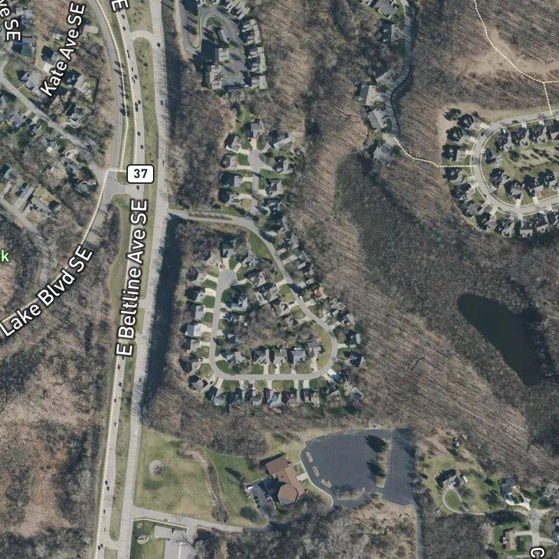 Biking through Windemere feels like moving through a residential pocket that actually respects the space between homes—24 acres carved into lots averaging less than half an acre each, which means you get some breathing room without the sprawl of a true subdivision. The condo layout reads as thoughtfully dense, the kind of place where you can reach John H. Bonnell Park in a six-minute walk and still have three other parks within a mile if you're the type who rotates where you stretch your legs. Downtown Grand Rapids sits 11.8 minutes away by car, and Gerald R. Ford airport is 14.4 minutes out, so the location trades density for genuine proximity to both the city and the route out of it. Homes here run around $635K, which positions the community in the middle-to-upper range for the area—not the highest ceiling, but not entry-level either.