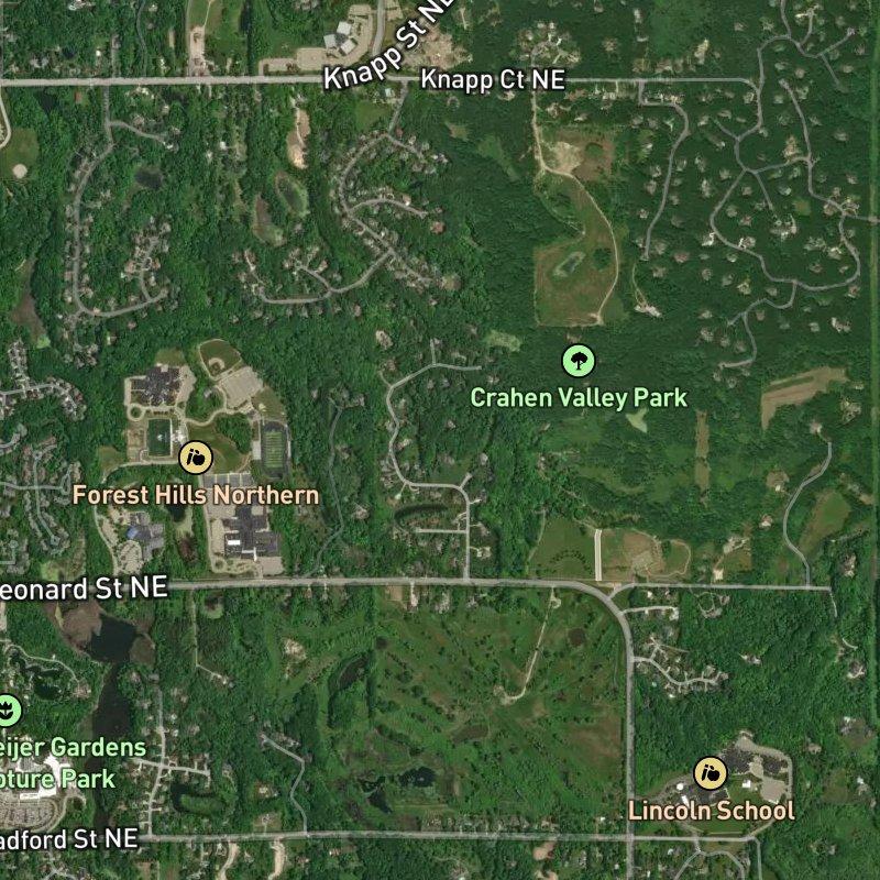 You look out from Winterwood across 82 acres of what amounts to genuine space—the kind of acreage that makes you remember why you didn't stay in town. Each lot runs about 1.65 acres, which means you're not looking at your neighbor's roof line from your kitchen window. Downtown Grand Rapids is twelve minutes away when you need it; the airport is twenty. Close enough to be practical, far enough to feel like an actual choice.