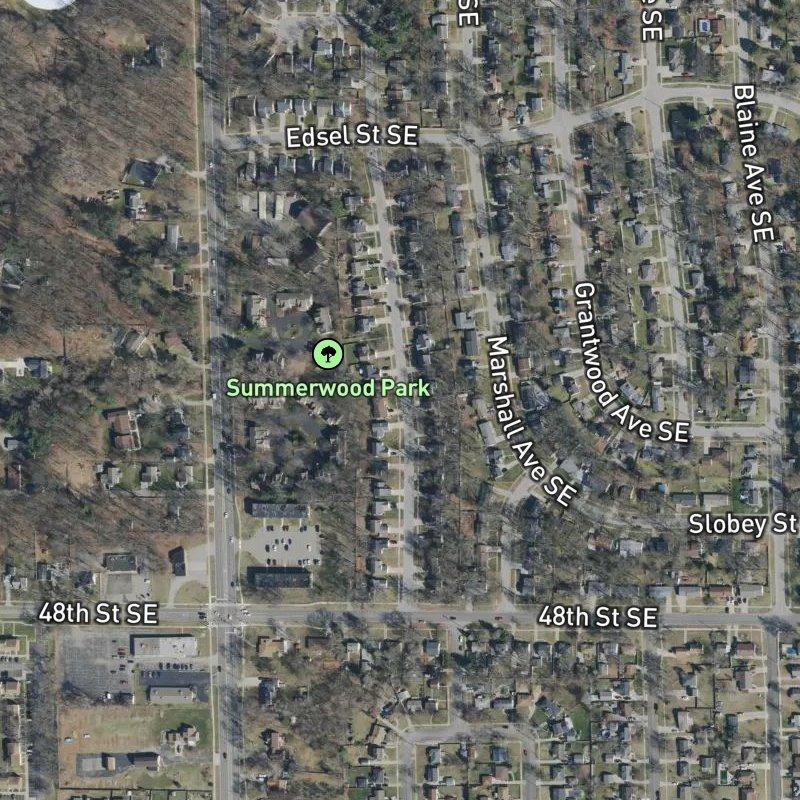 The tree-lined streets here have this quiet, established feel—mature landscaping that makes even a half-acre lot feel grounded. Woodbrook Village sits right in the Summer Woods Area, an 8-acre subdivision where homes typically run around $320K, and you're just steps from a transit stop when you need it. The real advantage is location: downtown Grand Rapids is 13 minutes away, Gerald R. Ford Airport 14, and you're surrounded by actual neighborhood bones—48 restaurants within a mile, a grocery store less than a mile off, a coffee shop nearby, and Summerwood Park is practically your backyard. Kentwood Public Schools serves the area. The lots are modest at about a quarter-acre each, which means less yard maintenance and more of that walkable-neighborhood texture—a restaurant is an 11-minute walk, and there are four parks within a mile.