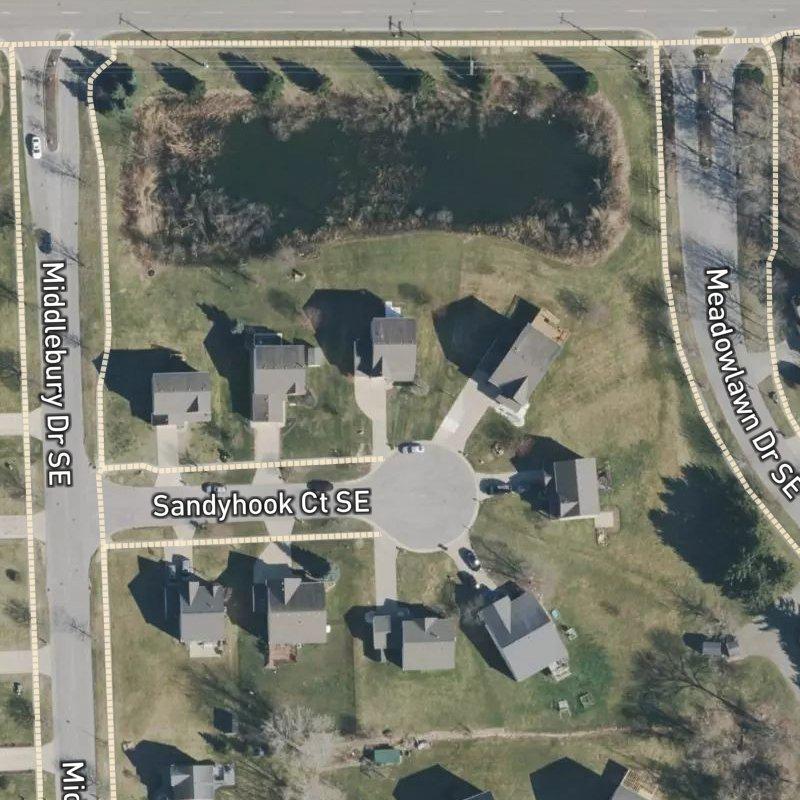 Early evening here is when Woodbury Ridge shows its best self—the five acres catch the lowering light in a way that makes the condo layouts feel less like standard units and more like actual homes, each one grounded on its own plot of land averaging half an acre. The community sits in the 44th St & Shaffer Ave Area, close enough to Gerald R. Ford airport that you're looking at just over eight minutes to departure gates, yet far enough that the hum of planes fades into background noise. Downtown Grand Rapids lands roughly eighteen minutes away, making the commute something you won't dread. Homes here run around $444K, and they're served by Kentwood Public Schools—the district handles the educational piece while you handle the rest of life. A small unnamed park sits an easy walk from the community, and there are three parks within a mile, which means you're not scrambling to find green space when the season turns.