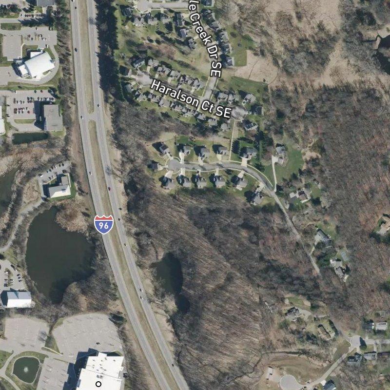 Late afternoon light hits these wooded lots just right—the kind of golden hour that makes you want to linger on the porch. Woodside Oaks spans sixteen acres in Eastmont Gardens Area, with each home sitting on roughly two-thirds of an acre, giving you real breathing room without feeling isolated. The tree cover is genuine; walking distance means about fifteen minutes to Calvin University Ecosystem Preserve if you're in the mood for a proper nature break. There's a grocery store within a quarter mile, and nearly twenty restaurants within a mile—everything from casual spots to sit-down places. Downtown Grand Rapids is just under fifteen minutes away, and Gerald R. Ford International Airport about thirteen minutes, so you're genuinely connected without feeling like you live on a main road.