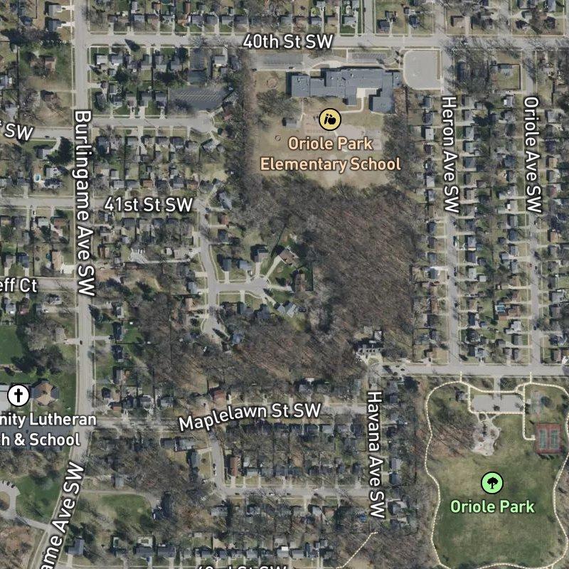 Driving through Woodview Plat, you move past modest single-family homes on spacious lots—each around half an acre—the kind of street where driveways don't feel cramped and you can actually see sky. The subdivision sits 11.5 minutes from downtown Grand Rapids, close enough that you're not spending your life in traffic but far enough that the pace feels unhurried. Wyoming Public Schools serves the area, and homes run around $337K, with a restaurant within a seven-minute walk and a transit stop five minutes on foot. What defines this place, though, is sheer access: twelve parks within a mile, eighty-four restaurants within the same radius, and the genuine convenience of Oriole Park just a four-minute walk away—the kind of density of amenities that makes you wonder why suburban living still gets painted as isolating.