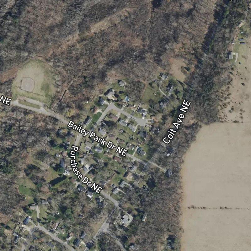 Woodworth Plat sits within the Riverview Homesites Area, an 8-acre subdivision where lots average about a third of an acre—small enough to keep maintenance manageable, large enough to feel like your own space. Median home values hover around $365K, and you're just over 14 minutes from downtown Grand Rapids, which makes the commute genuinely livable without feeling like you're in the thick of it. The neighborhood has three parks within walking distance, including Donald J. Lamoreaux Park about 15 minutes on foot, and restaurants and coffee shops are close by—roughly a 13-minute walk if you're in the mood. Grocery options abound; the nearest is less than a mile away, and there are a dozen stores within two miles if you want choices. Families in the area feed into Northview Public Schools, and the airport is about 27 minutes away when you need it.